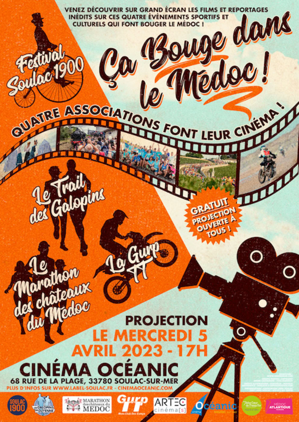 Retrouvez sur grand écran les films et reportages inédits sur ces quatre évènements sportifs et culturels qui font bouger le Médoc !