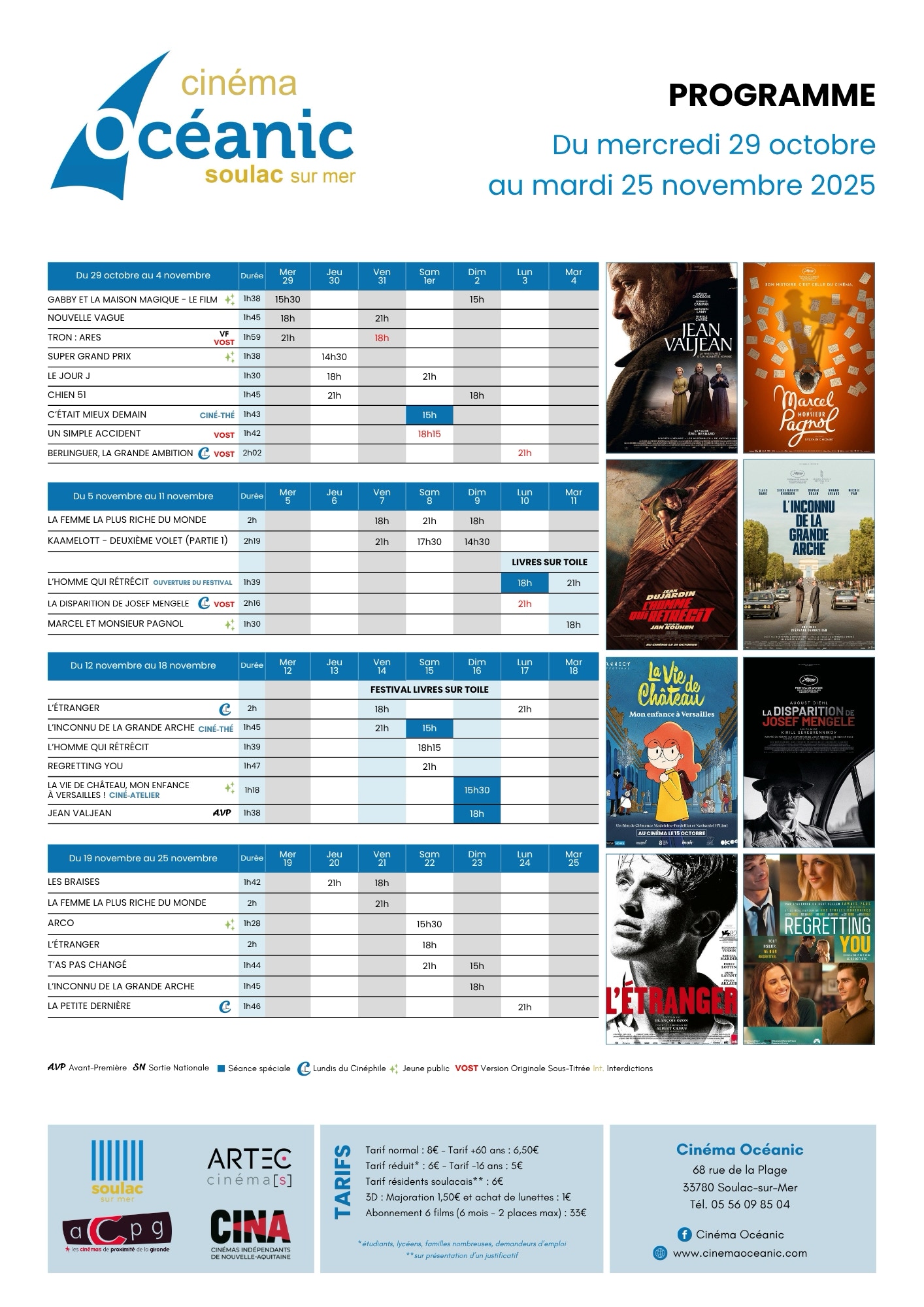 Que vous veniez en bateau, en voiture, à moto, à vélo, à pied, à la nage… le Cinéma Océanic vous accueille tous les jours au 68 Rue de la Plage à Soulac-sur-Mer