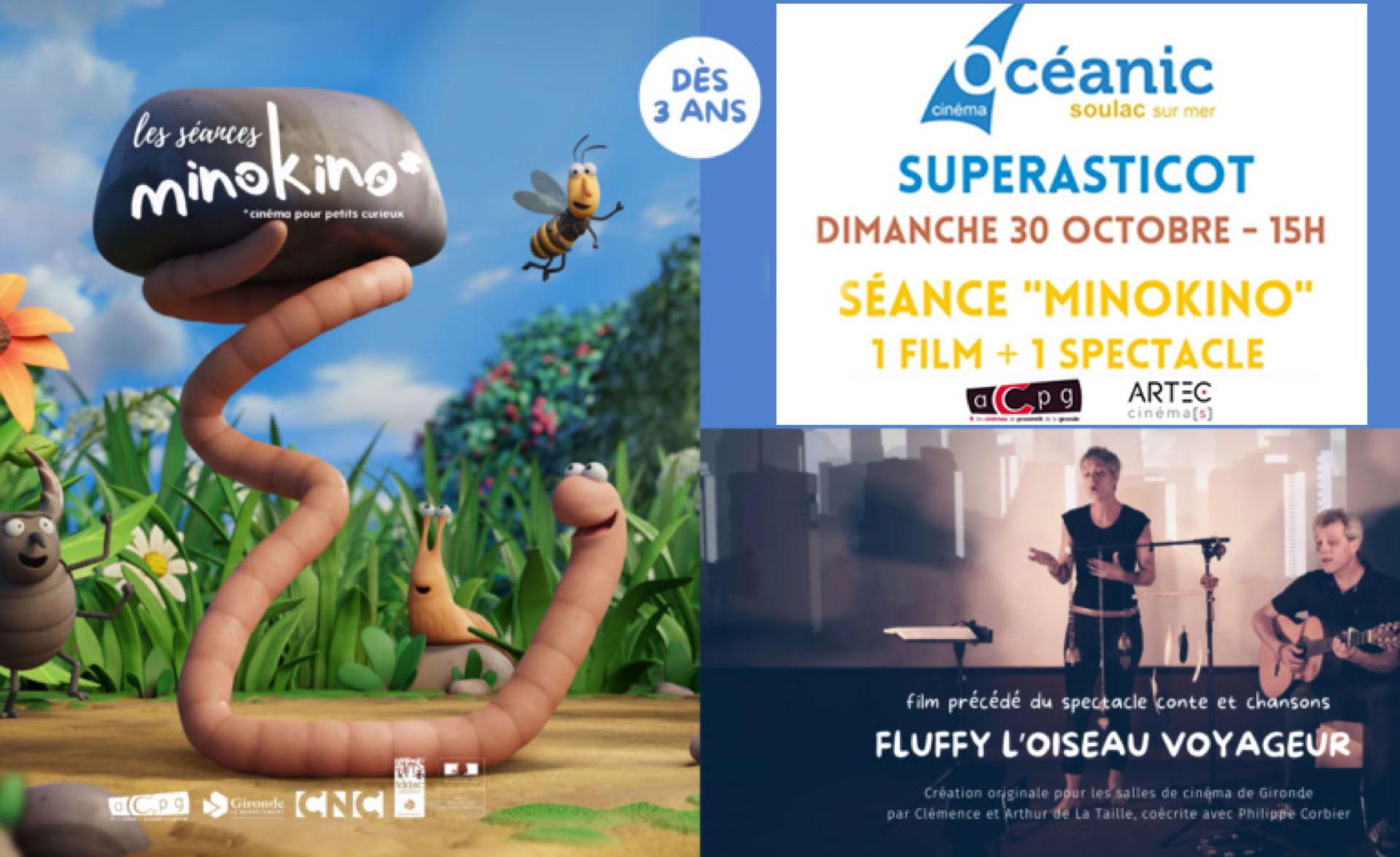 Séance spéciale MinoKino pour les tout-petits (1 film + 1 spectacle).